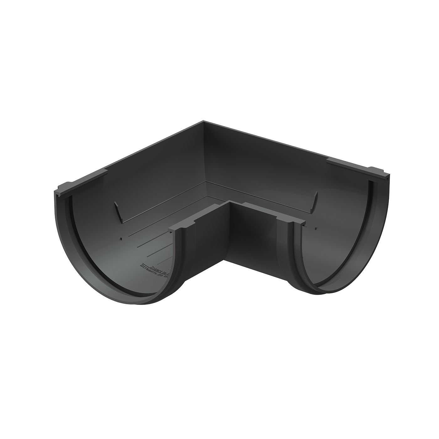 Главная / Интернет-магазин / Кровля, водосток / Водосток / Пластиковая водосточная система Docke Premium / Угол желоба 90˚ Premium, графит 7024